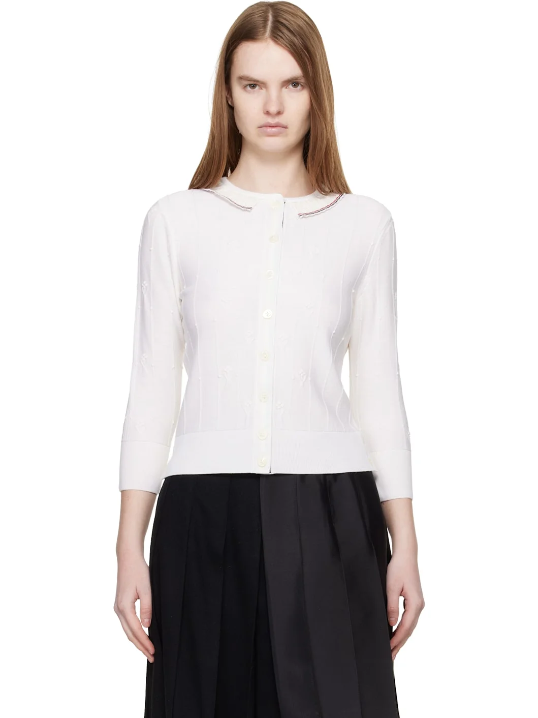White Bobble Stitch 3/4 Sleeve Cardigan