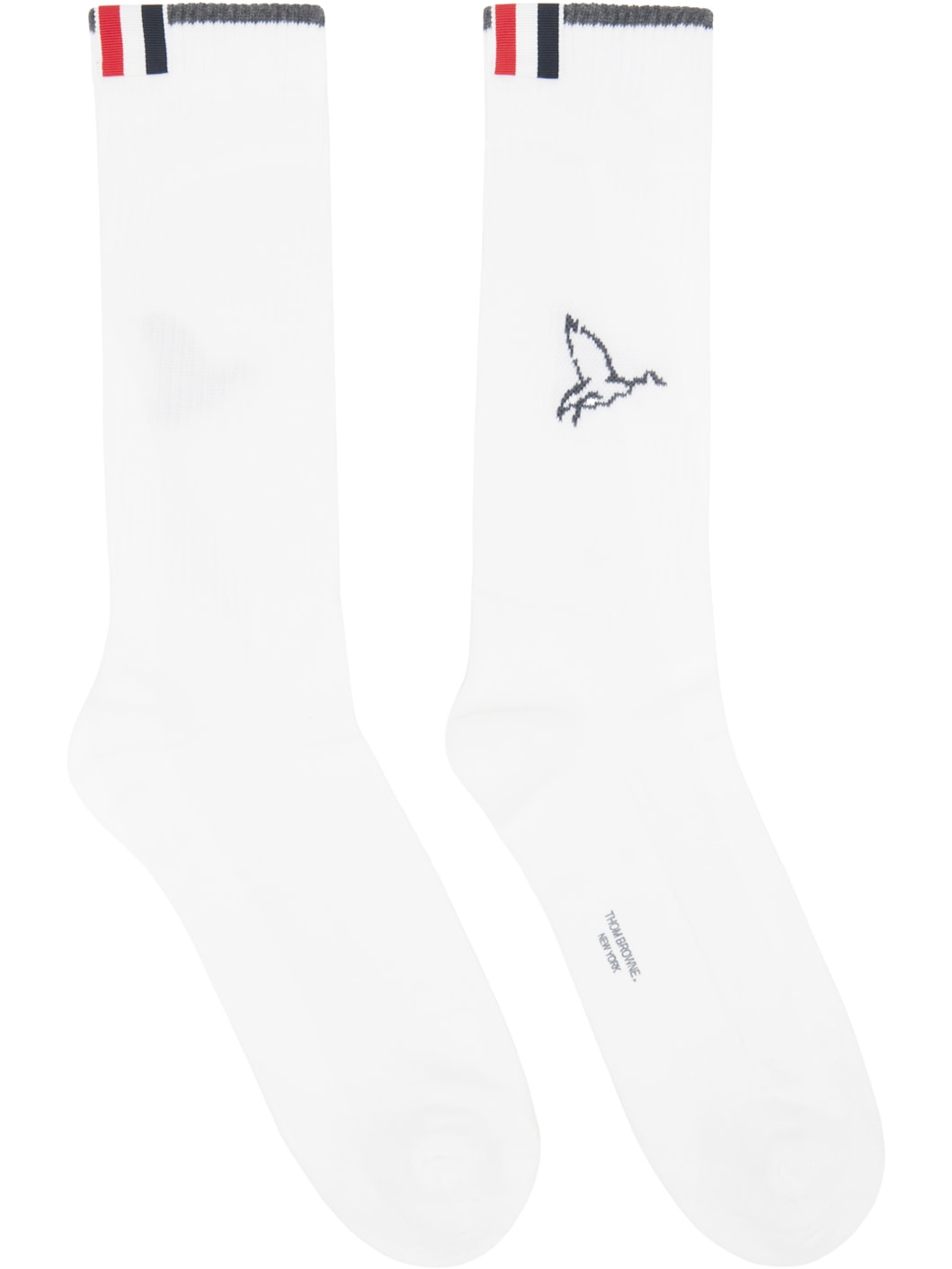 Pair of calf-high stretch cotton-blend jersey socks in white. · Signature tricolor grosgrain flag and stripe at cuffs · Jacquard graphic at face · Logo stamp at sole Supplier color: White 73% cotton, 24% polyamide, 3% elastane. Made in Italy 252381M220002
