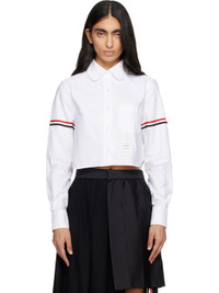 White Oxford Armband Cropped Round Collar Shirt