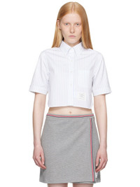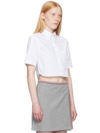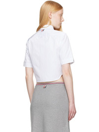 White Pinstripe Poplin Cropped Short Sleeve Shirt