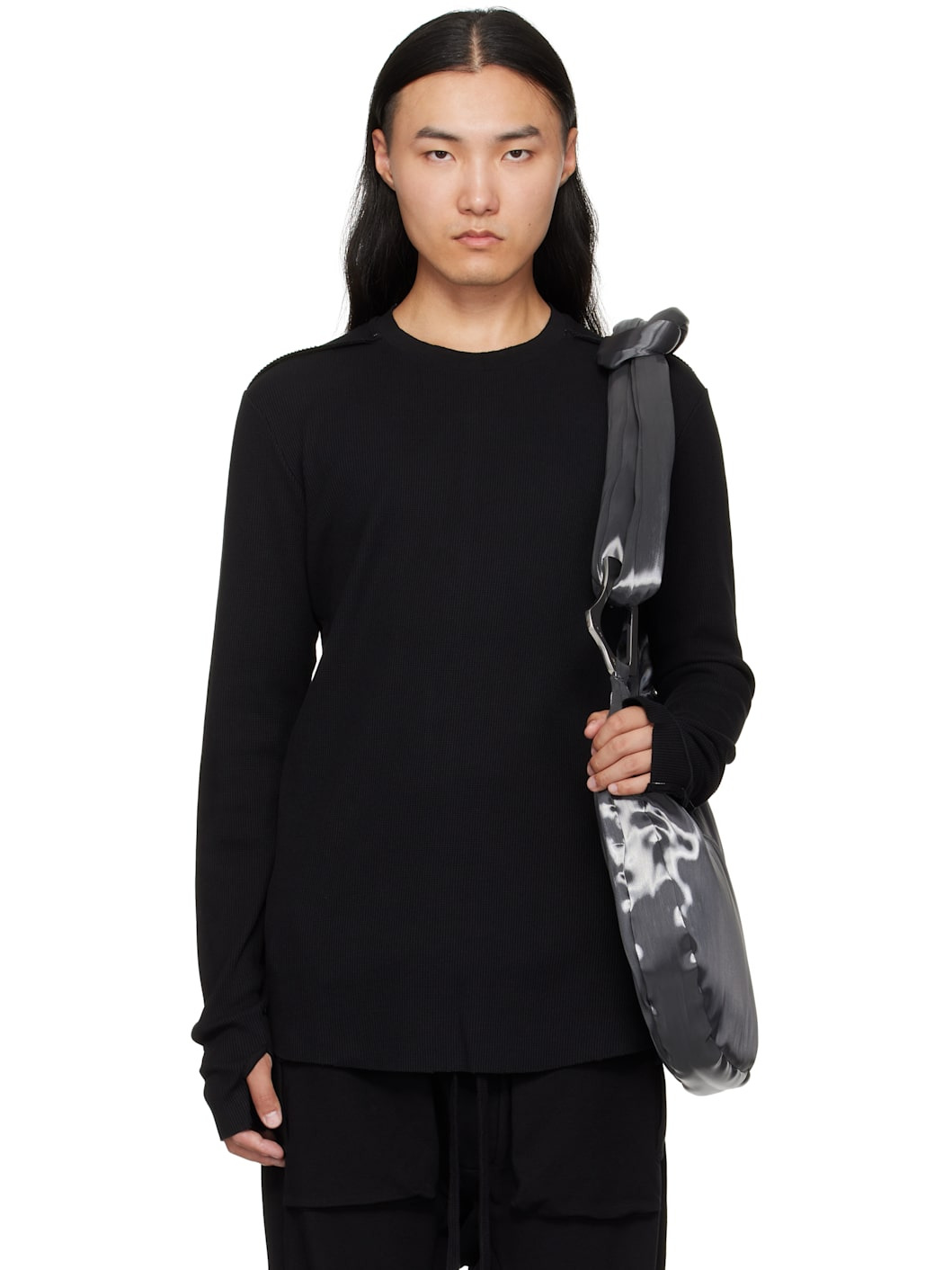 Waffle-knit stretch cotton T-shirt. · Raw edges throughout · Rib-knit crewneck · Exposed seams at sleeves and back · Thumbhole at cuffs · Contrast stitching in white Supplier color: Black Body: 97% cotton, 3% elastane. Trim: 95% cotton, 5% elastane. Made in Turkey 252974M213014
