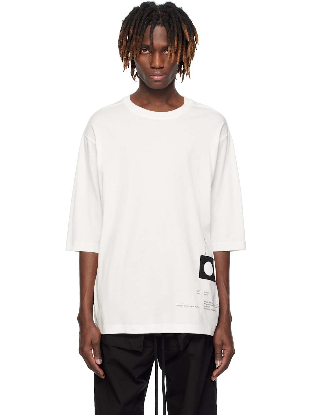 Relaxed-fit bamboo- and cotton-blend jersey T-shirt. · Rib-knit crewneck · Printed text and graphic patch at front · Dropped shoulders · Logo embroidered at back collar · Central seam at back Supplier color: Off-white 70% bamboo, 30% cotton. Made in Turkey 251974M213018