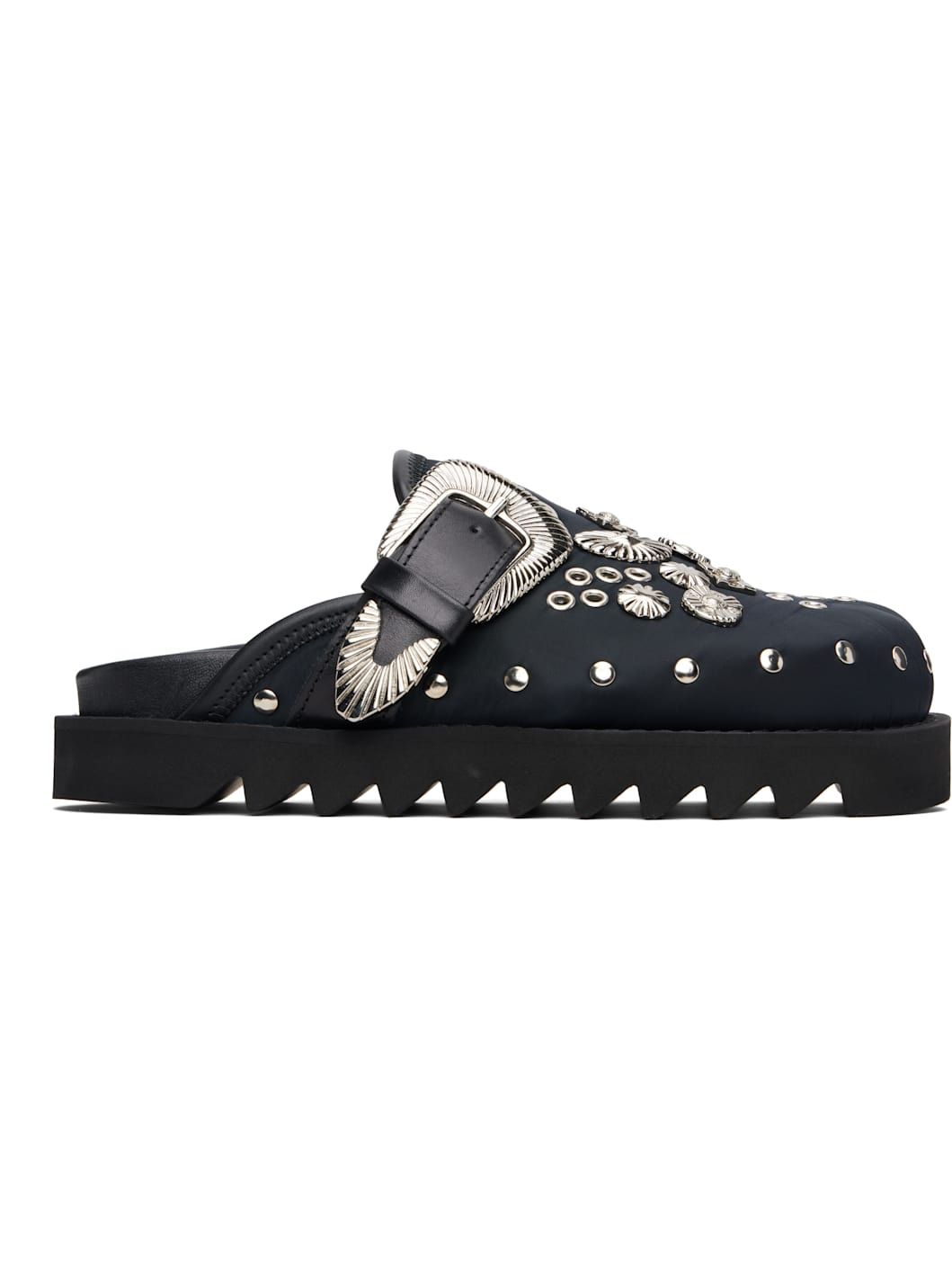 Black Eyelet Metal Sabot Slip-on Loafers