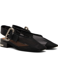 Sheer mesh flats in black. · Square toe · Partially elasticized pin-buckle slingback strap · Plaque at heel · Stacked leather heel with rubber injection · Leather sole · Heel: H1.25" Supplier color: Black Upper: textile. Sole: leather, rubber. Made in Portugal 251492F118008