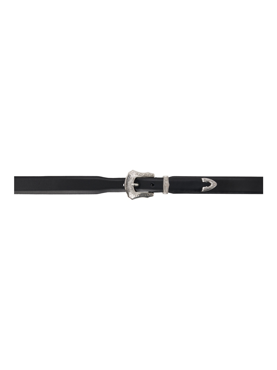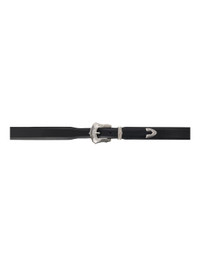 Buffed leather belt in black. · Engraved detailing throughout · Hardware at end · Sliding post-stud fastening at back face · Pin-buckle fastening · W1" Supplier color: Black