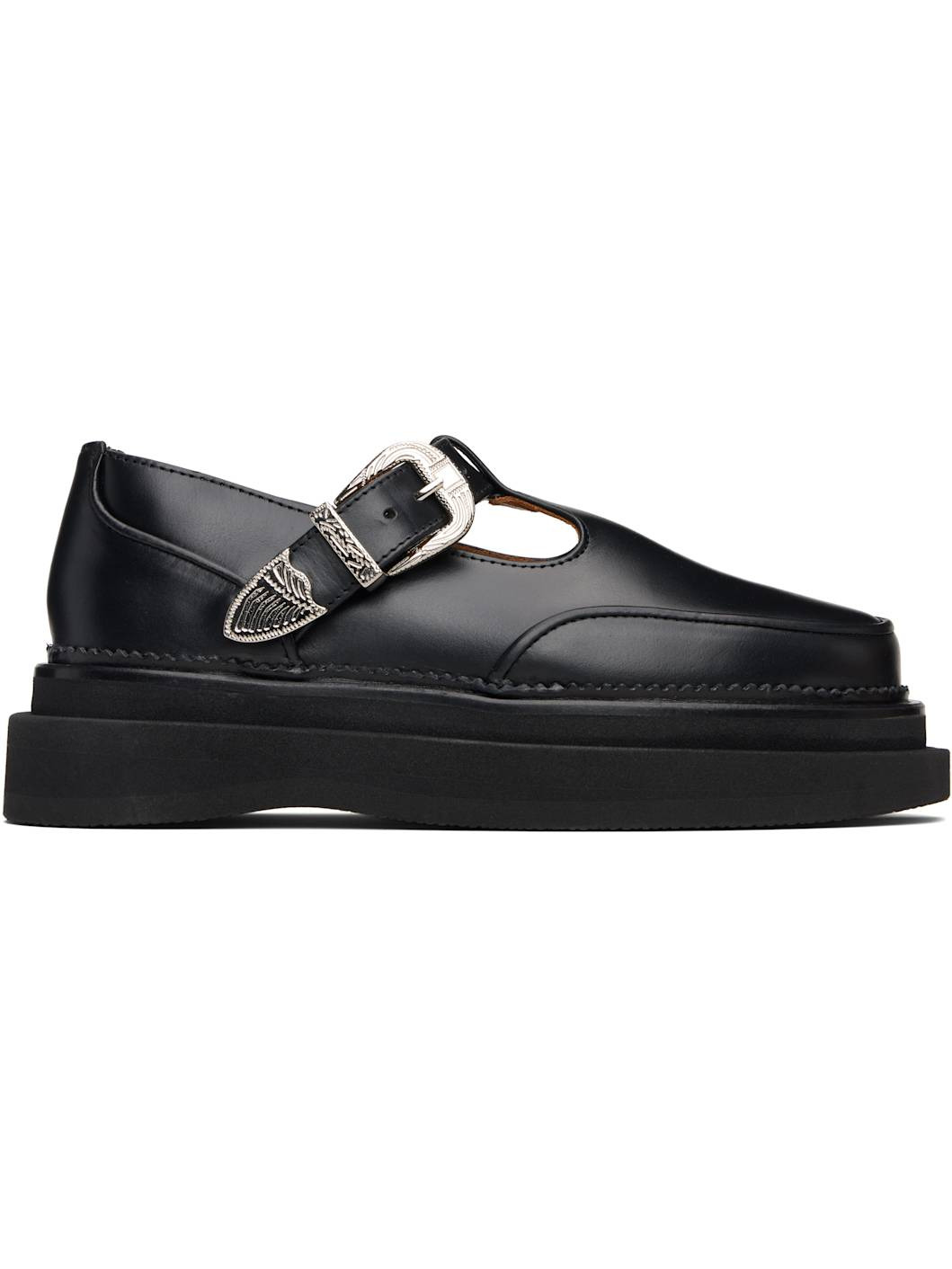 Buffed leather Mary Jane-style loafers. · Moc toe · Engraved pin-buckle strap at vamp · Foam rubber platform midsole · Foam rubber sole · Platform: H2" Supplier color: Black Upper: leather. Sole: rubber. Made in Portugal 252492F121006