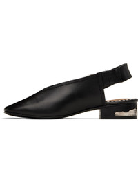 Buffed leather flats in black. · Square toe · Partially elasticized pin-buckle slingback strap · Plaque at heel · Stacked leather heel with rubber injection · Leather sole · Heel: H1.25" Available exclusively at SSENSE. Supplier color: Black Upper: leather. Sole: leather, rubber. Made in Portugal 251492F118007