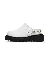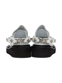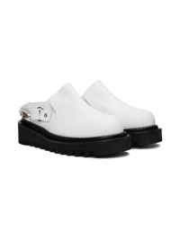 Buffed leather loafers in white. · Graphic hardware at slingback strap · Logo printed at padded leather footbed · Foam rubber platform midsole · Treaded foam rubber outsole · Silver-tone hardware · Platform: H1.75 in Supplier color: White