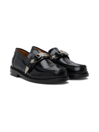 Polished leather loafers in black. Graphic hardware at vamp and heel. · Moc toe · Strap at vamp · Pinched seam at heel counter · Serrated detailing at welt · Suede and buffed leather lining · Stacked leather heel with rubber injection · Leather sole · Silver-tone hardware Supplier color: Black Upper: leather. Sole: leather, rubber. Made in Portugal 241688M231015