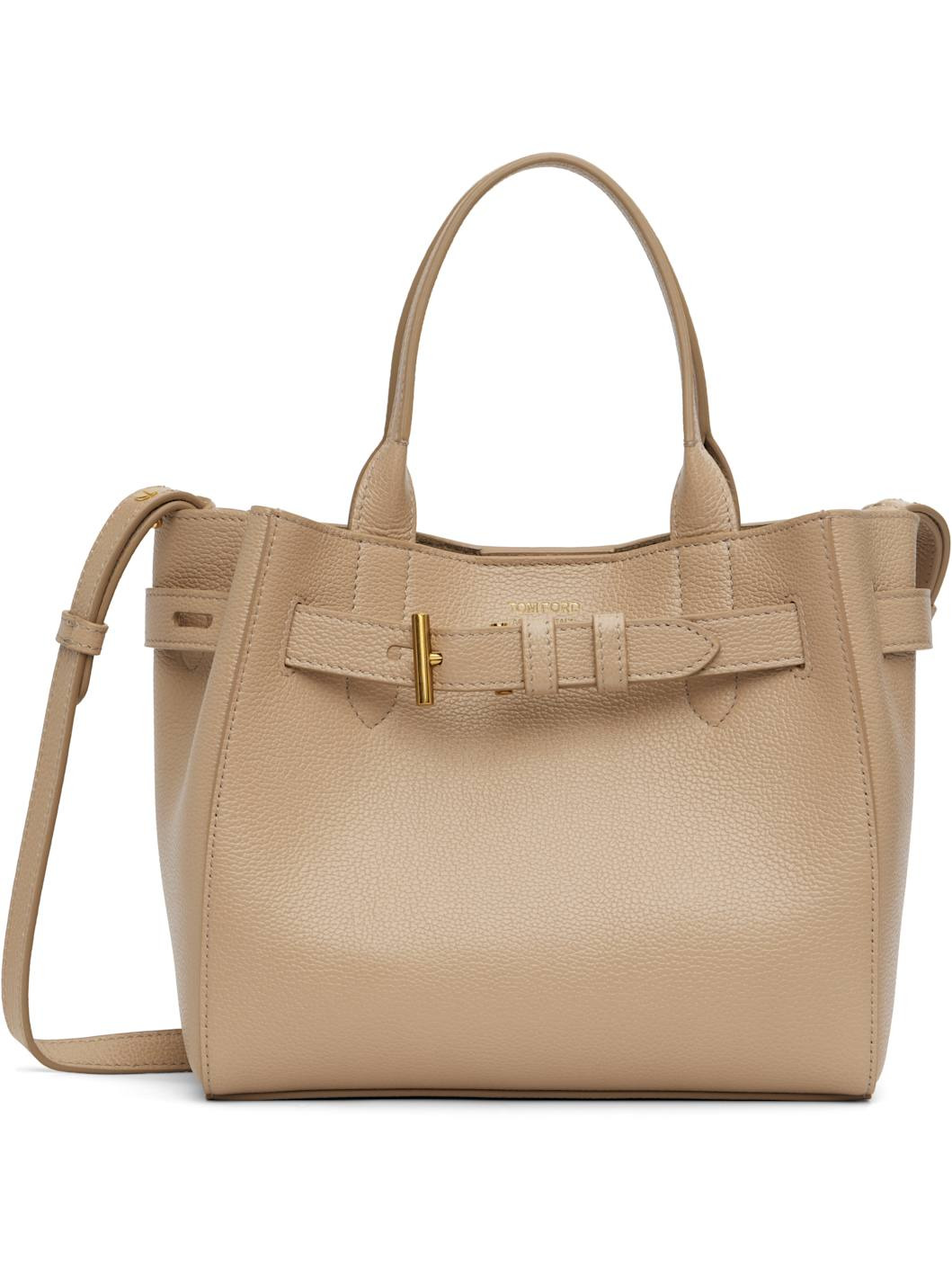 Grained calfskin top handle bag. · Twin carry handles · Adjustable and detachable crossbody strap · Logo hardware at adjustable post-stud strap · Logo stamp at face · Magnetic tab fastening at throat · Patch pocket at interior · Leather interior · H8" x W9" x D4" Supplier color: Light beige Calfskin. Made in Italy 252076F046000