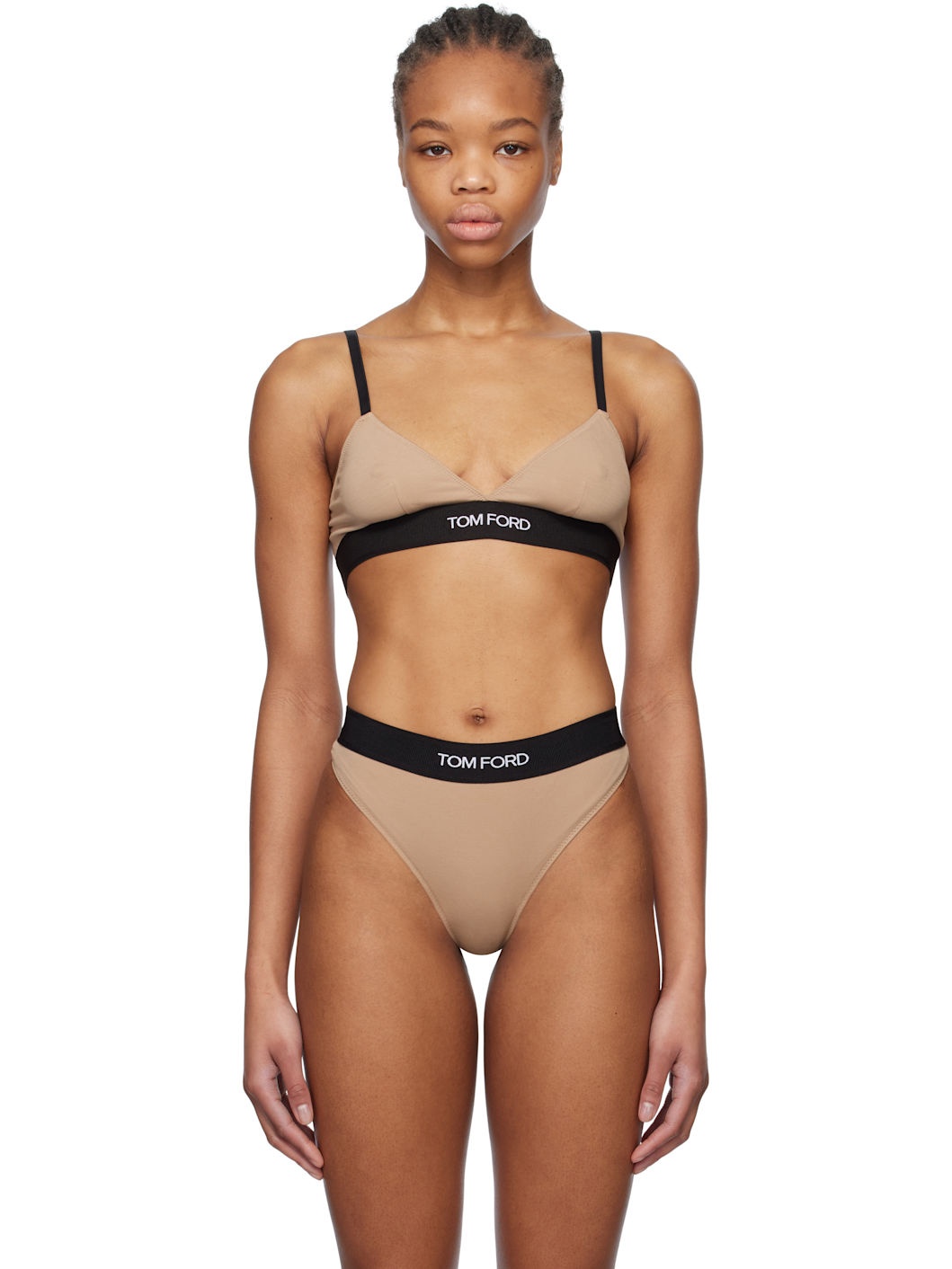 Stretch modal jersey bra. · V-neck · Dart at cups · Jacquard logo at elasticized hem · Adjustable spaghetti straps · Adjustable hook-eye fastening at back · Logo-engraved gold-tone hardware Supplier color: Dusty rose Body: 97% modal, 3% elastane. Trim: 82% polyester, 9% elastane, 9% nylon. Made in Bosnia And Herzegowina 251076F073001
