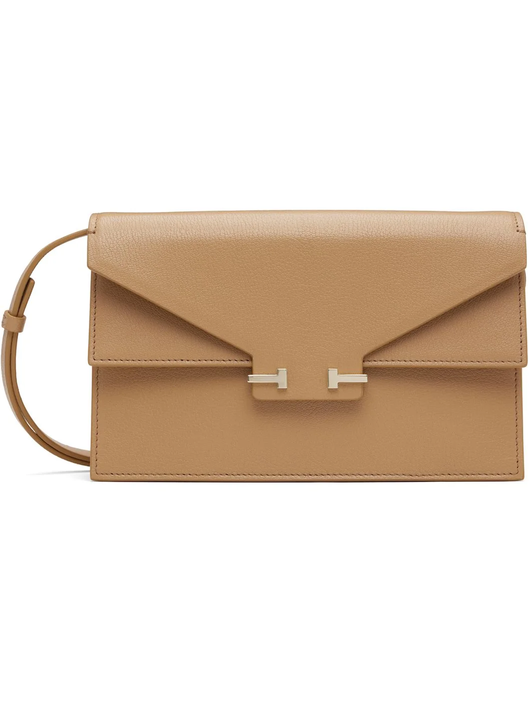 Grained goatskin shoulder bag. · Adjustable and detachable crossbody strap · Concealed flap pocket at face · Logo stamp at back face · Logo hardware at press-stud flap · Patch pockets and three card slots at interior · Grained goatskin and moire lining · Gold-tone hardware · H5.5" x W8.5" x D1.5" Supplier color: Rhum Body: 100% goatskin. Lining: 100% goatskin. Made in Italy 261076F048000