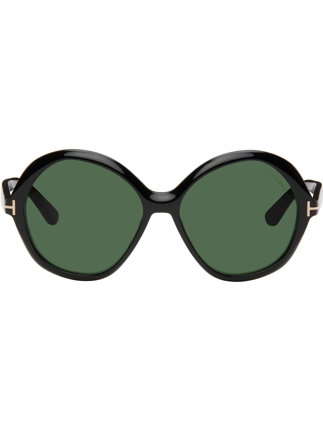Round acetate-frame sunglasses. · Gray lenses · Logo etched at lens · 100% UVA/UVB protection, category 3 · Integrated nose pads · Inset logo at temples · Inset logo plaque at temple tips · Includes case · Size: 60.16 135 Supplier color: Black Acetate. Made in Italy 252076F005012