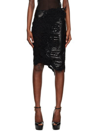 Semi-sheer cotton-blend guipure lace and goatskin suede skirt. Crocodile pattern bonded throughout. · Paneled and asymmetric construction · Concealed zip closure at back waist · Full stretch silk mesh lining Supplier color: Black Body: 92% cotton, 8% polyester. Trim: 100% goatskin. Lining: 92% silk, 8% elastane. Made in Italy 231076F092003