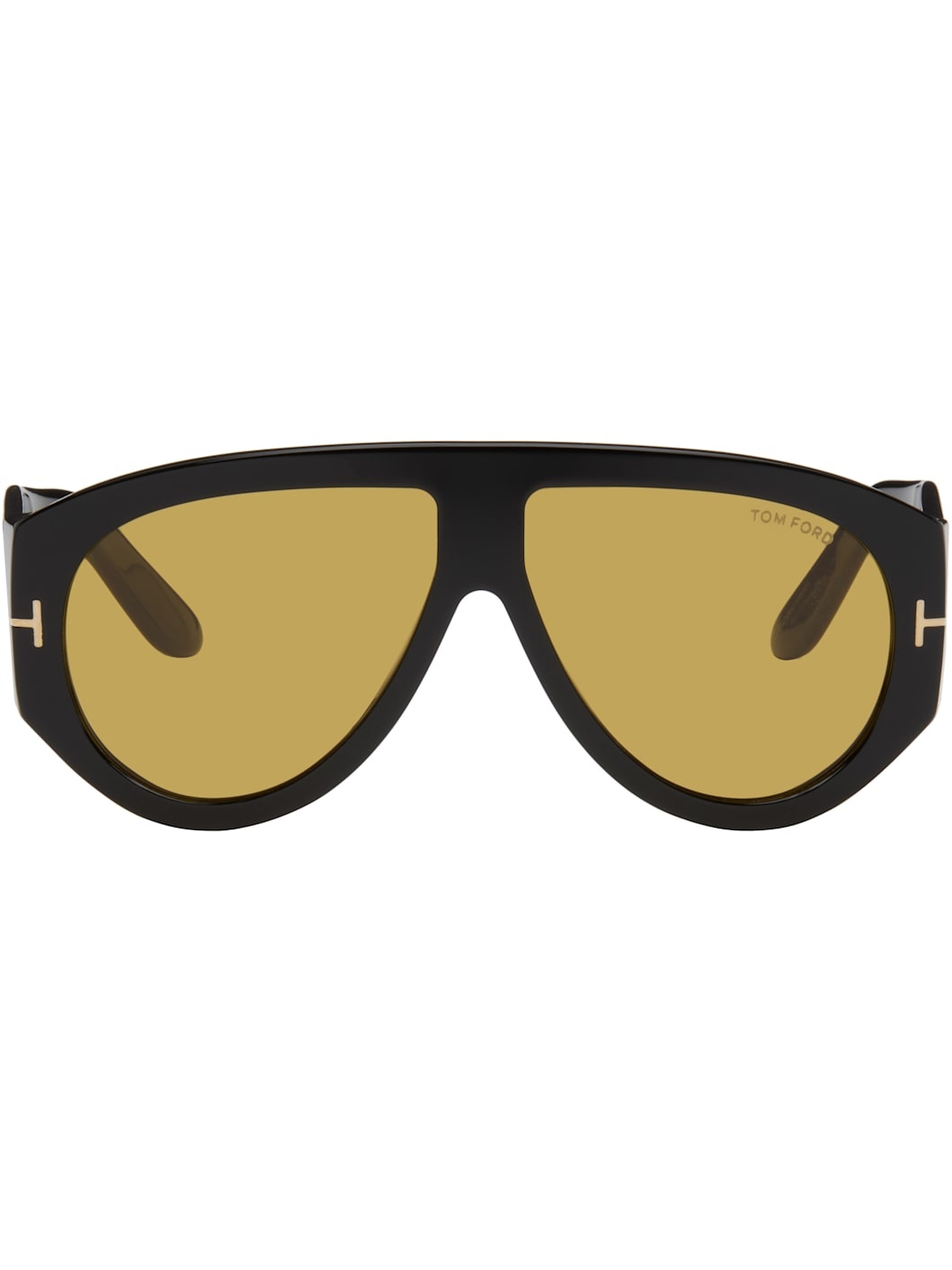 Aviator-style bio-acetate-frame sunglasses. · Yellow lenses · 100% UVA/UVB protection, category 2 · Logo etched at lens · Integrated nose pads · Inset logo hardware at hinges · Logo plaque at temple tips · Includes case · Size: 60.12 140 Supplier color: Shiny black/Brown Acetate. Made in Italy 252076M134024