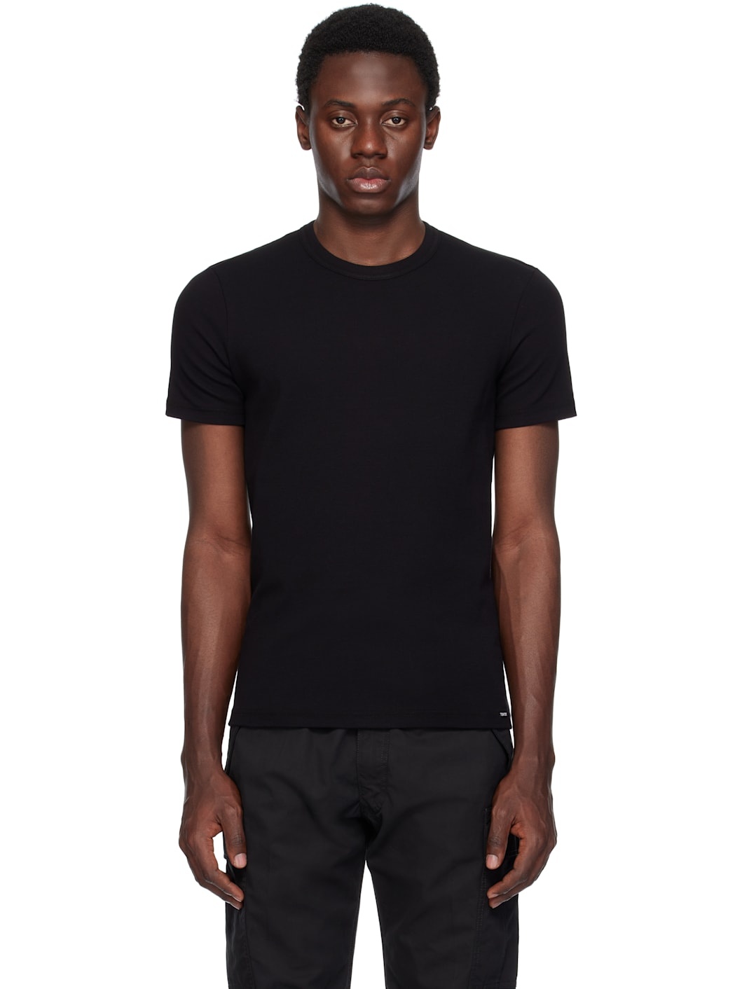 Stretch cotton jersey T-shirt. · Rib-knit crewneck · Logo patch at front hem Supplier color: Black 95% cotton, 5% elastane. Made in Bosnia And Herzegowina 251076M213014