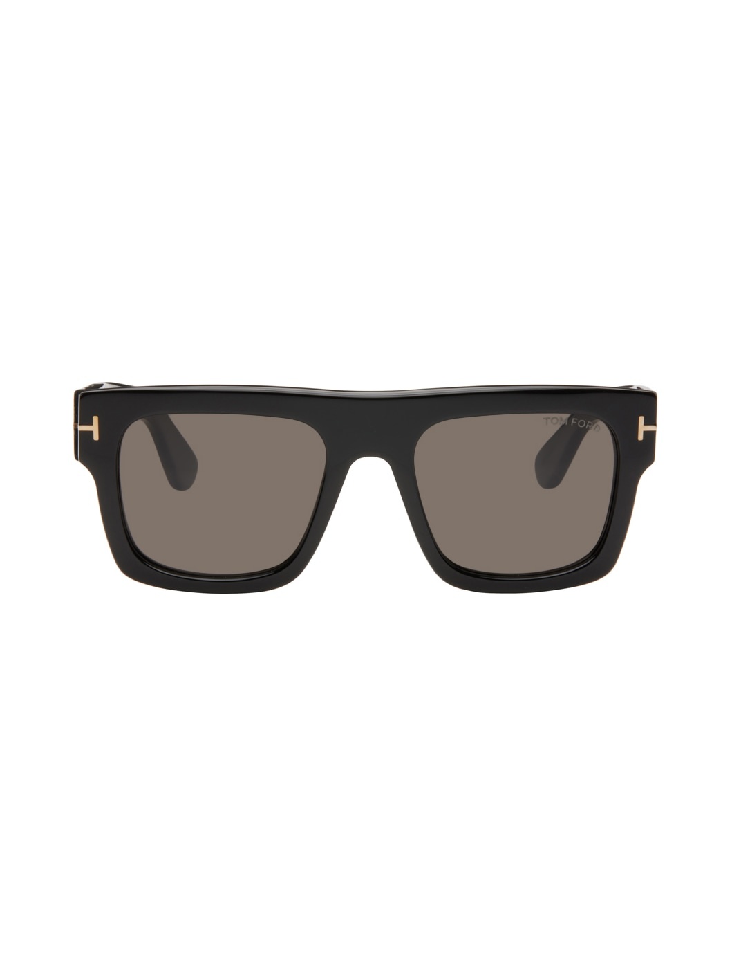 Rectangular acetate-frame sunglasses in black. · Gradient gray lenses · Logo etched at lens · Integrated nose pads · Logo hardware at hinges · Logo plaque at temple tips · Includes case · Size: 53.20 145 Supplier color: Shiny black