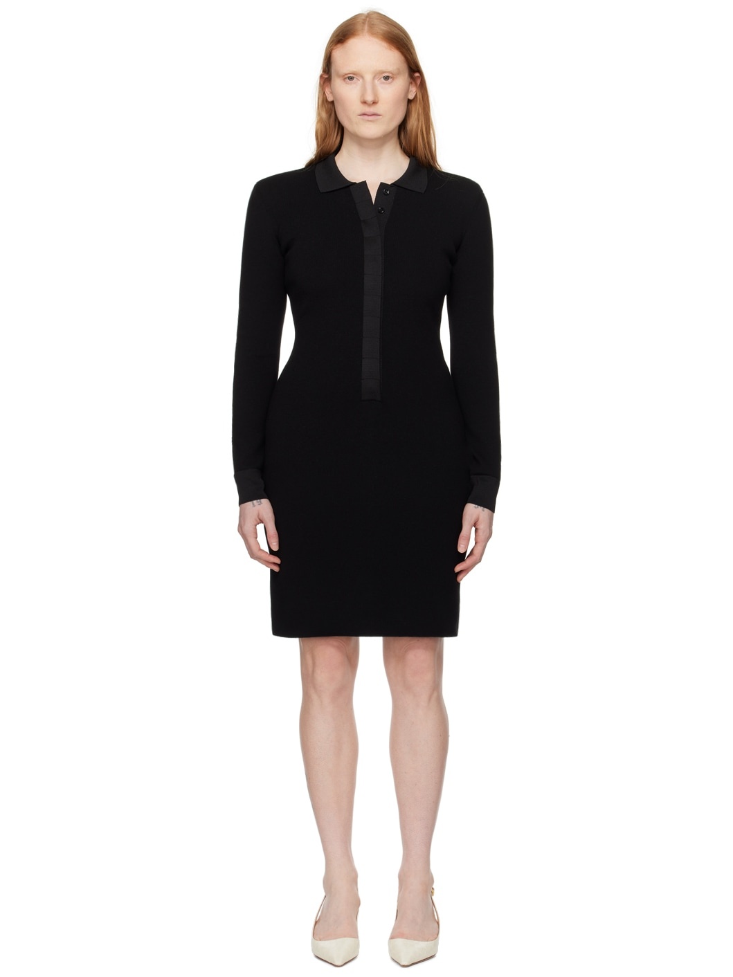 Knit virgin wool- and silk-blend dress. · Spread collar · Concealed button placket · Padded shoulders · Mother-of-pearl hardware Supplier color: Black 80% virgin wool, 11% silk, 9% polyester. Made in Italy 241076F052001