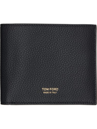 Pebble-grained calfskin bifold wallet. · Gold-tone logo stamp at face · Eight card slots and two patch pockets · One note slot · Sheepskin lining · H4" x W4.5" x D0.5" Supplier color: Black Calfskin. Made in Italy 252076M164019
