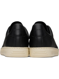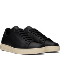 Low-top pebble grained calfskin sneakers in black. · Lace-up closure · Logo stamp at tongue and heel tab · Padded collar · Logo perforated at sides · Grained calfskin lining · Treaded rubber sole Supplier color: Black/Cream