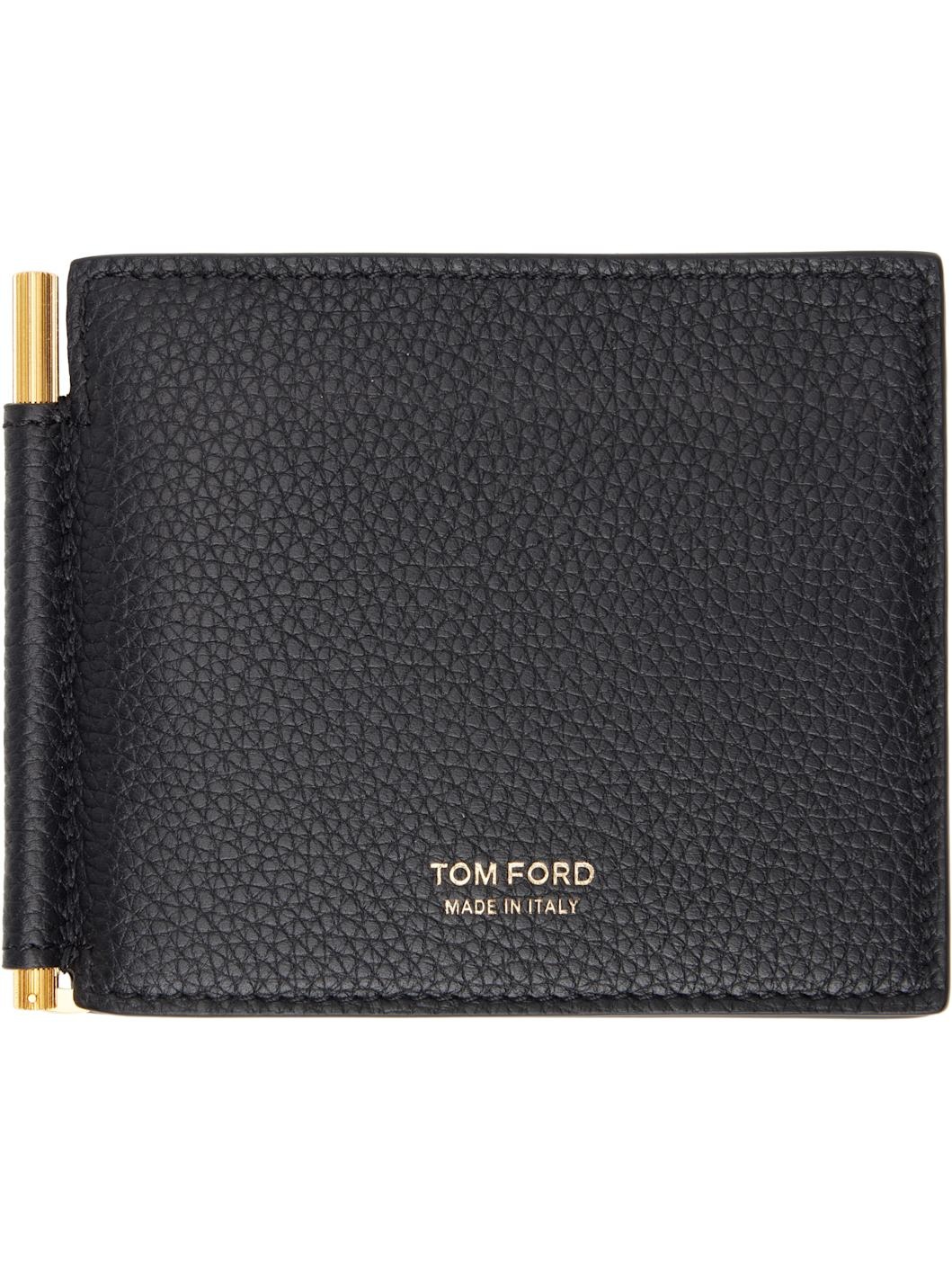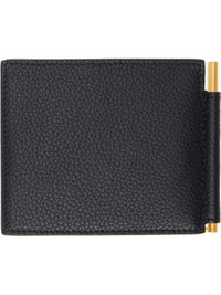 Black Grained Leather Money Clip Card Holder