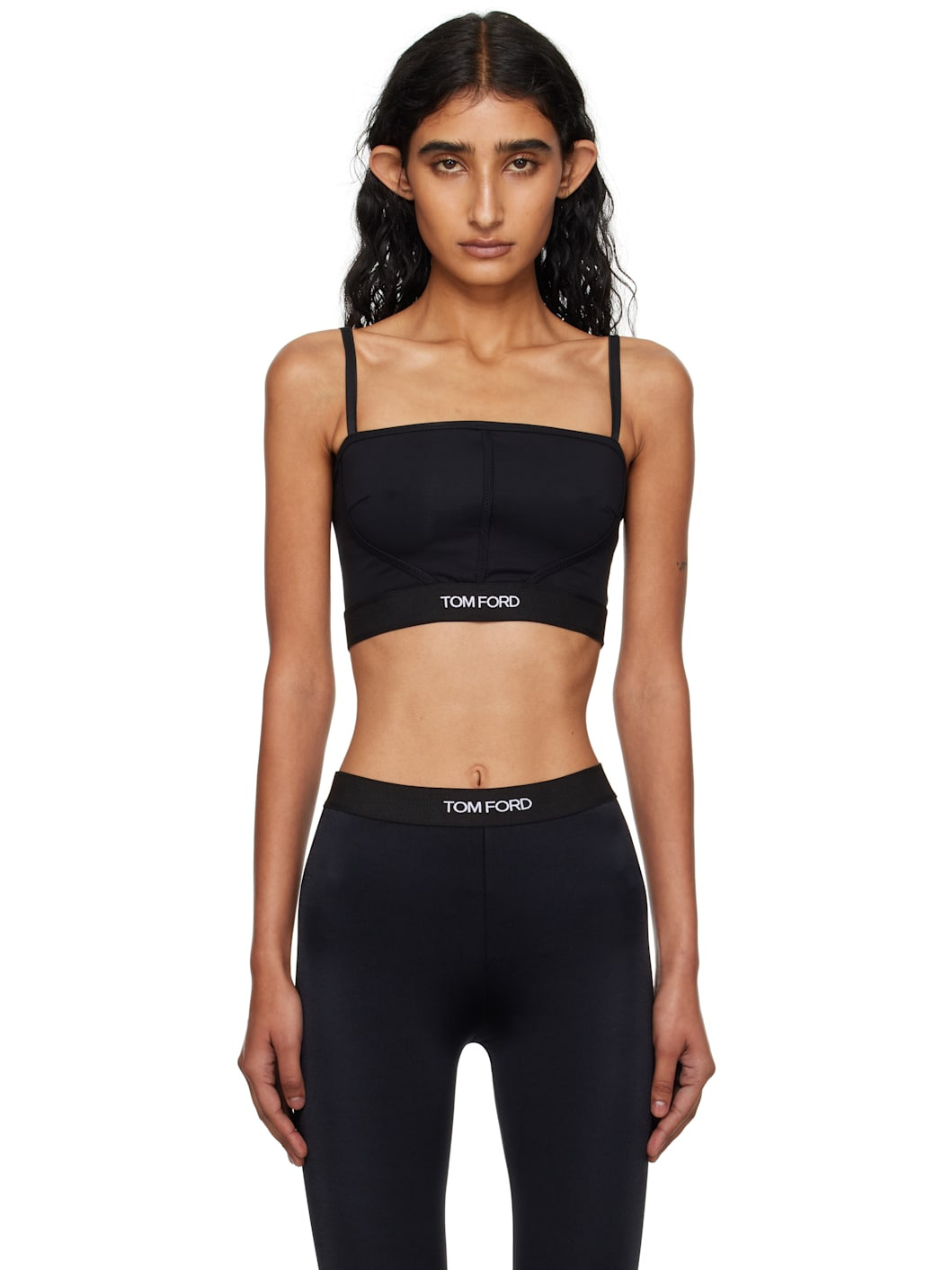 Stretch modal jersey bandeau bra. · Square neck · Darts at chest · Jacquard logo at elasticized hem · Adjustable spaghetti straps Supplier color: Black Body: 97% modal, 3% elastane. Trim: 82% polyester, 9% polyamide, 9% elastane. Made in Bosnia And Herzegowina 252076F111000