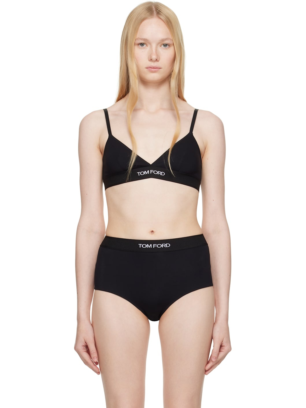 Stretch modal jersey bra. · V-neck · Dart at cups · Adjustable spaghetti straps · Logo-woven elasticized hem · Hook-eye fastening at back Supplier color: Black Body: 97% modal, 3% elastane. Trim: 82% polyester, 9% elastane, 9% polyamide. Made in Bosnia And Herzegowina 251076F073004