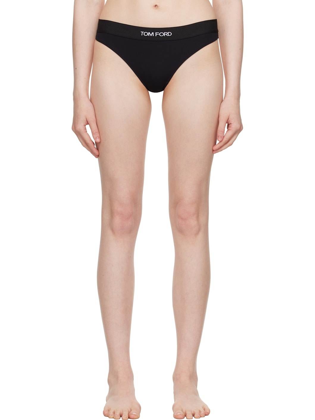 Stretch modal jersey thong. · Jacquard logo at elasticized waistband · Partial stretch jersey lining Supplier color: Black Body: 97% modal, 3% elastane. Trim: 82% polyester, 9% nylon, 9% elastane. Made in Italy 251076F081000