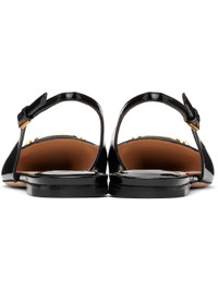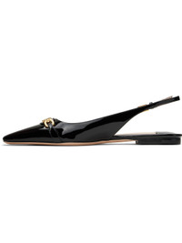 Patent calfskin ballerina flats in black. · Pointed square toe · Logo hardware at vamp · Pin-buckle slingback strap · Grained leather lining · Stacked leather heel with rubber injection · Leather sole · Logo-engraved gold-tone hardware Supplier color: Black Upper: calfskin. Sole: leather, rubber. Made in Italy 251076F118001