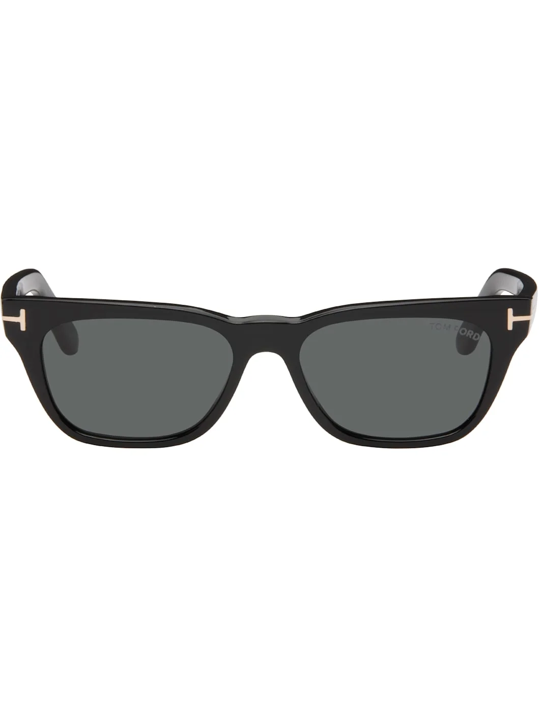 Rectangular acetate-frame sunglasses. · Gray lenses · 100% UVA/UVB protection, category 3 · Logo etched at lens · Integrated nose pads · Logo hardware at temples · Logo plaque at temple tips · Includes case · Size: 53.16 145 Supplier color: Black Acetate. Made in Italy 261076F005015