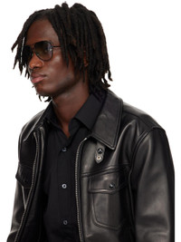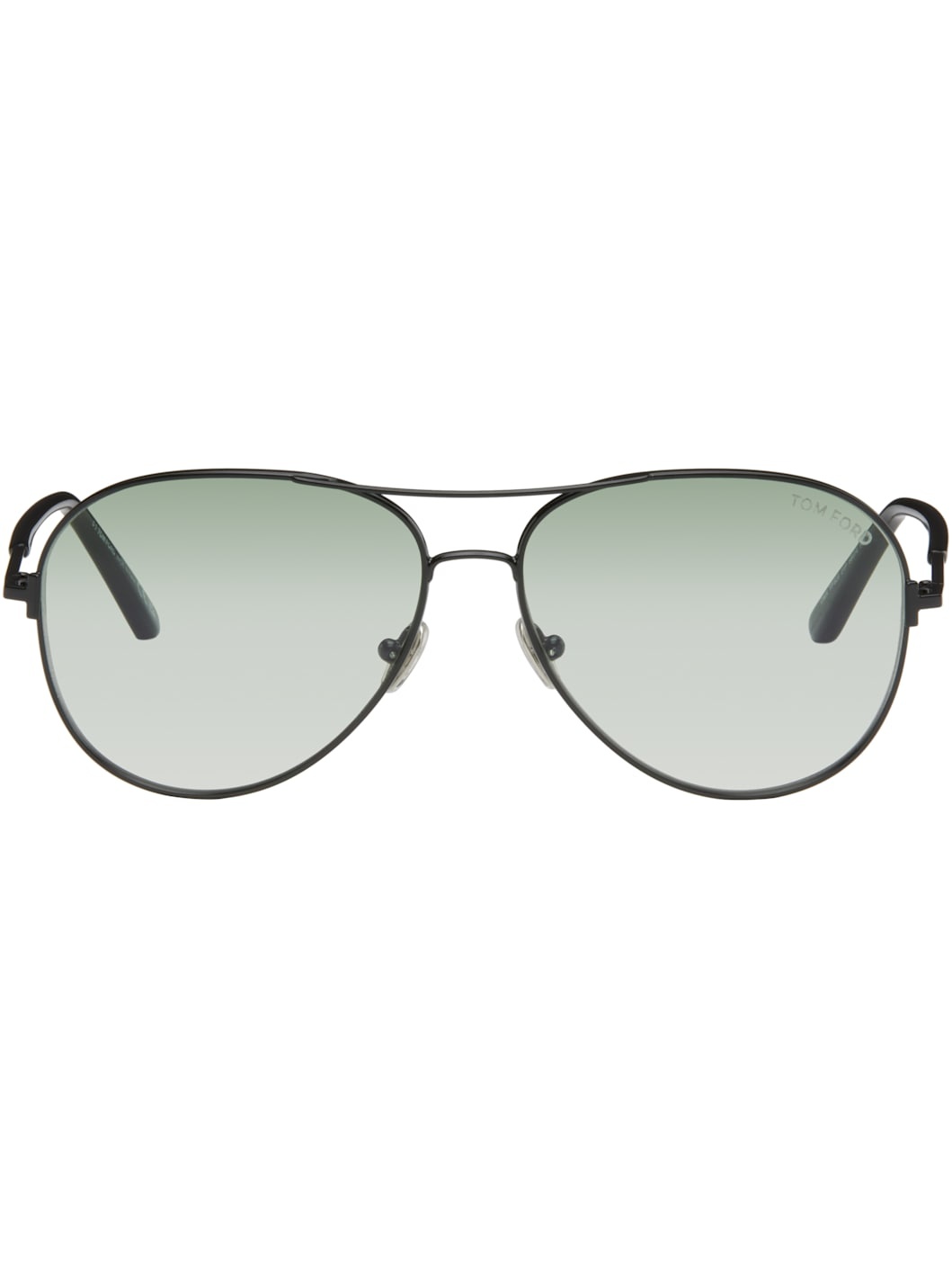 Aviator-style metal-frame sunglasses in black. · Polarized gradient green lenses · 100% UVA/UVB protection, category 1 · Logo etched at lens · Adjustable rubber nose pads · Double bridge · Logo plaque at acetate temple tips · Includes case · Size: 59.14 140 Supplier color: Black Metal, acetate. Made in Italy 252076M134023