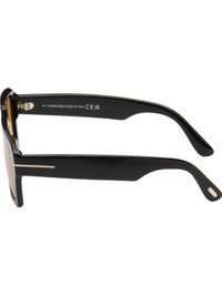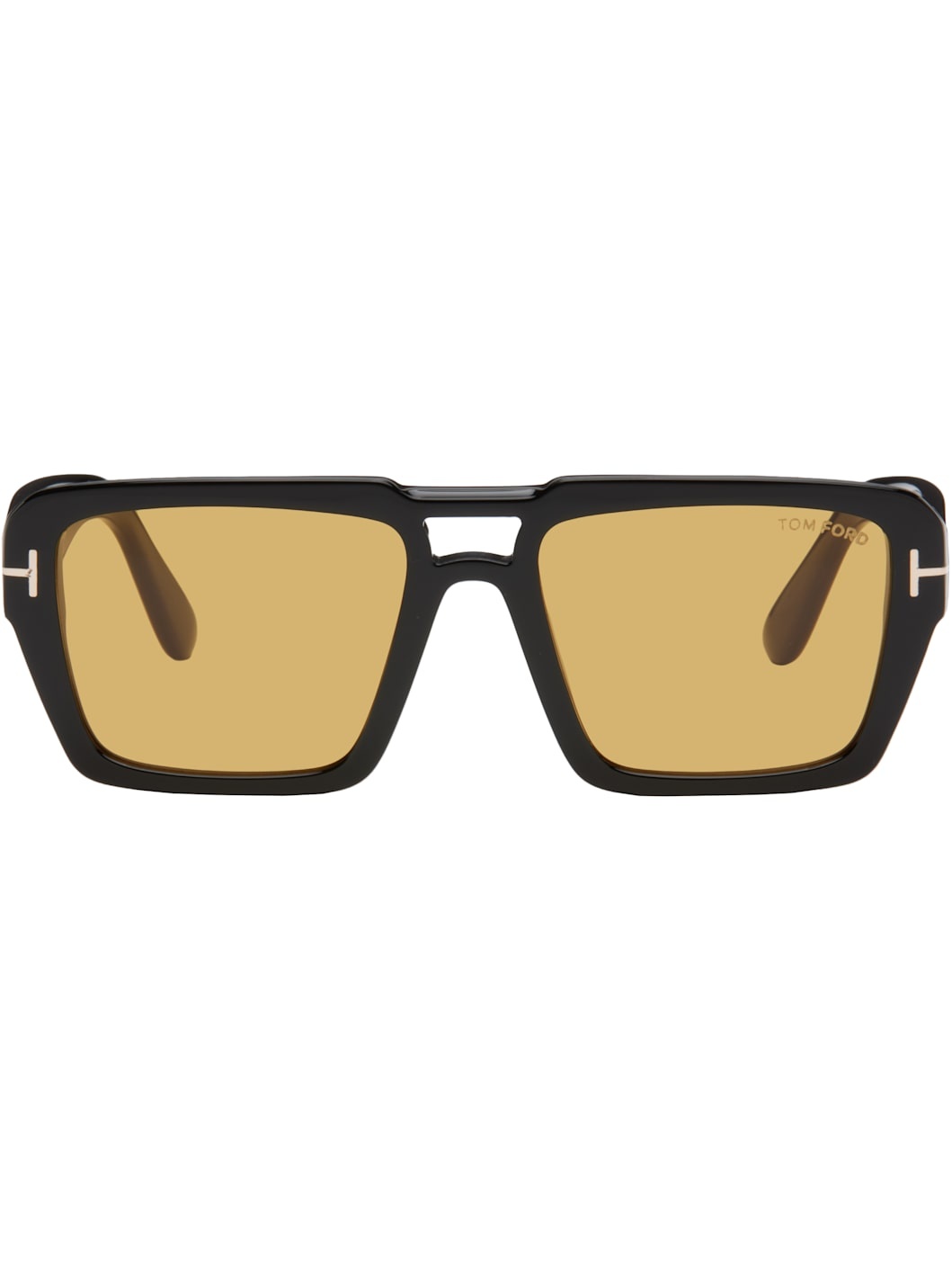 Square bio-based acetate-frame sunglasses in black. · Brown lenses · 100% UV protection · Logo etched at lens · Double bridge · Integrated nose pads · Inset logo hardware at face and temple tips · Includes case · Size: 56.19 145 Supplier color: Black Acetate. Made in Italy 252076F005004