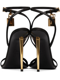 Black Shiny Padlock Pointy Naked Heeled Sandals