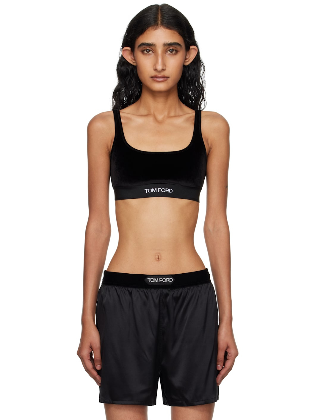 Black Stretch Lustrous Velour Signature Bralette