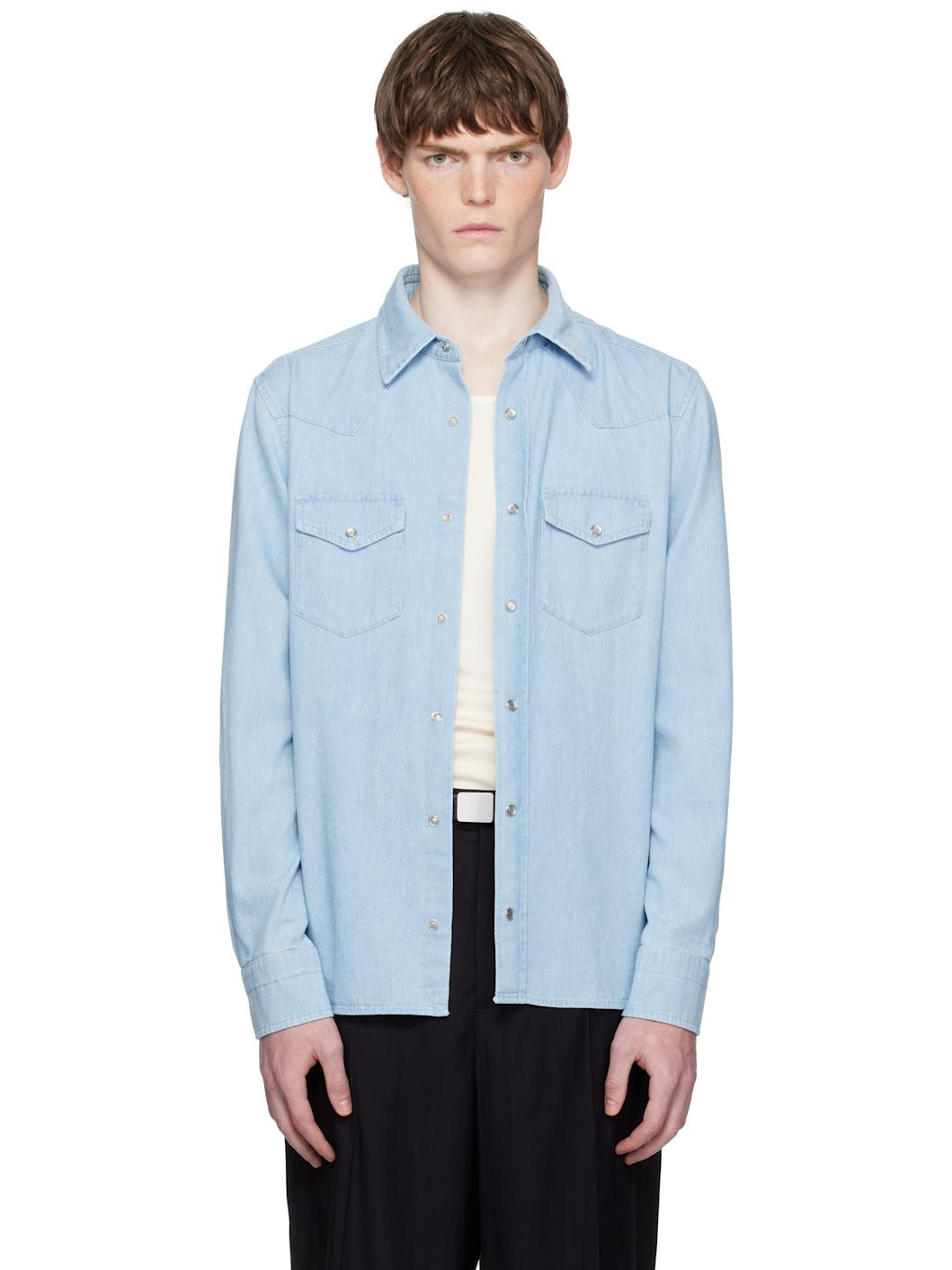 Cotton chambray shirt. · Spread collar · Press-stud closure · Western yoke at front and back · Flap pockets at chest · Shirttail hem · Press-stud barrel cuffs · Mother-of-pearl hardware Supplier color: Pale blue denim 100% cotton. Made in Italy 252076M192004
