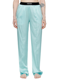 Relaxed-fit stretch silk satin lounge pants. · Logo patch at elasticized velvet waistband · Four-pocket styling · Pinched seams at front and back Supplier color: Plume
