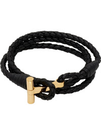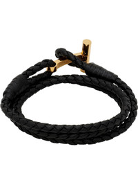 Wraparound braided grained calfskin bracelet in black. · Logo hardware at toggle closure · Gold-tone brass hardware Supplier color: Black Calfskin, brass. Made in Italy 252076M142006