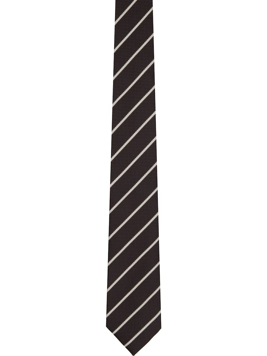 Woven silk tie. · Jacquard stripes throughout · Keeper loop at back face · W3" Supplier color: Coffee 100% silk. Made in Italy 252076M158006
