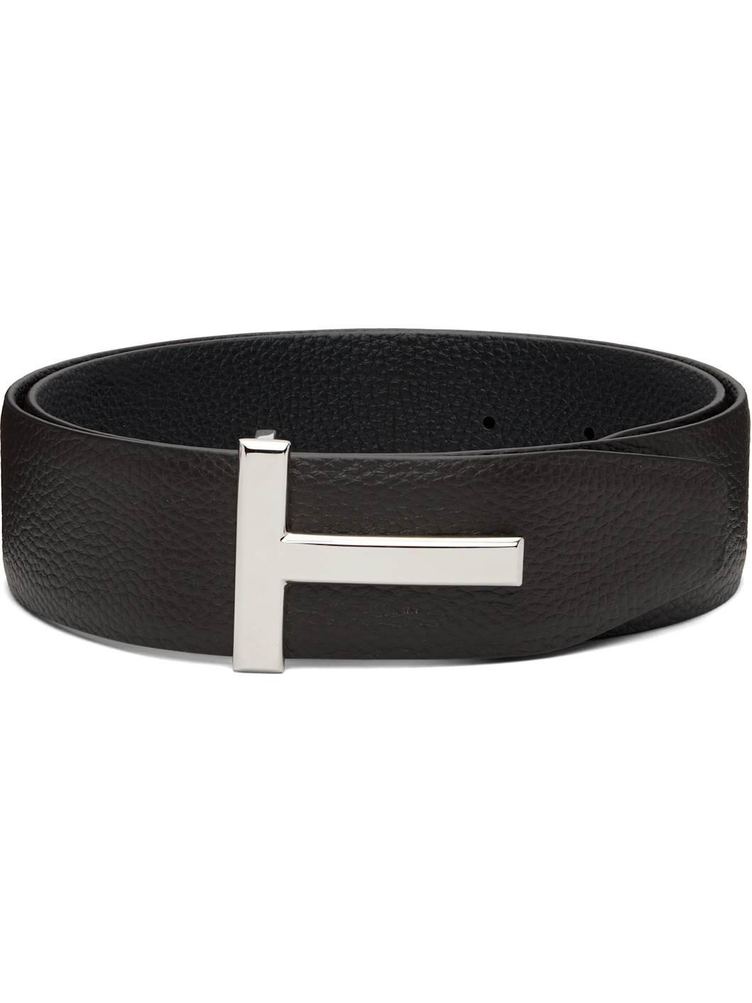 Reversible grained leather belt. Reverse in black grained leather. · Logo hardware at post-stud fastening · W1.5" Supplier color: Brown/Black Leather. Made in Italy 252076M131009