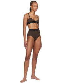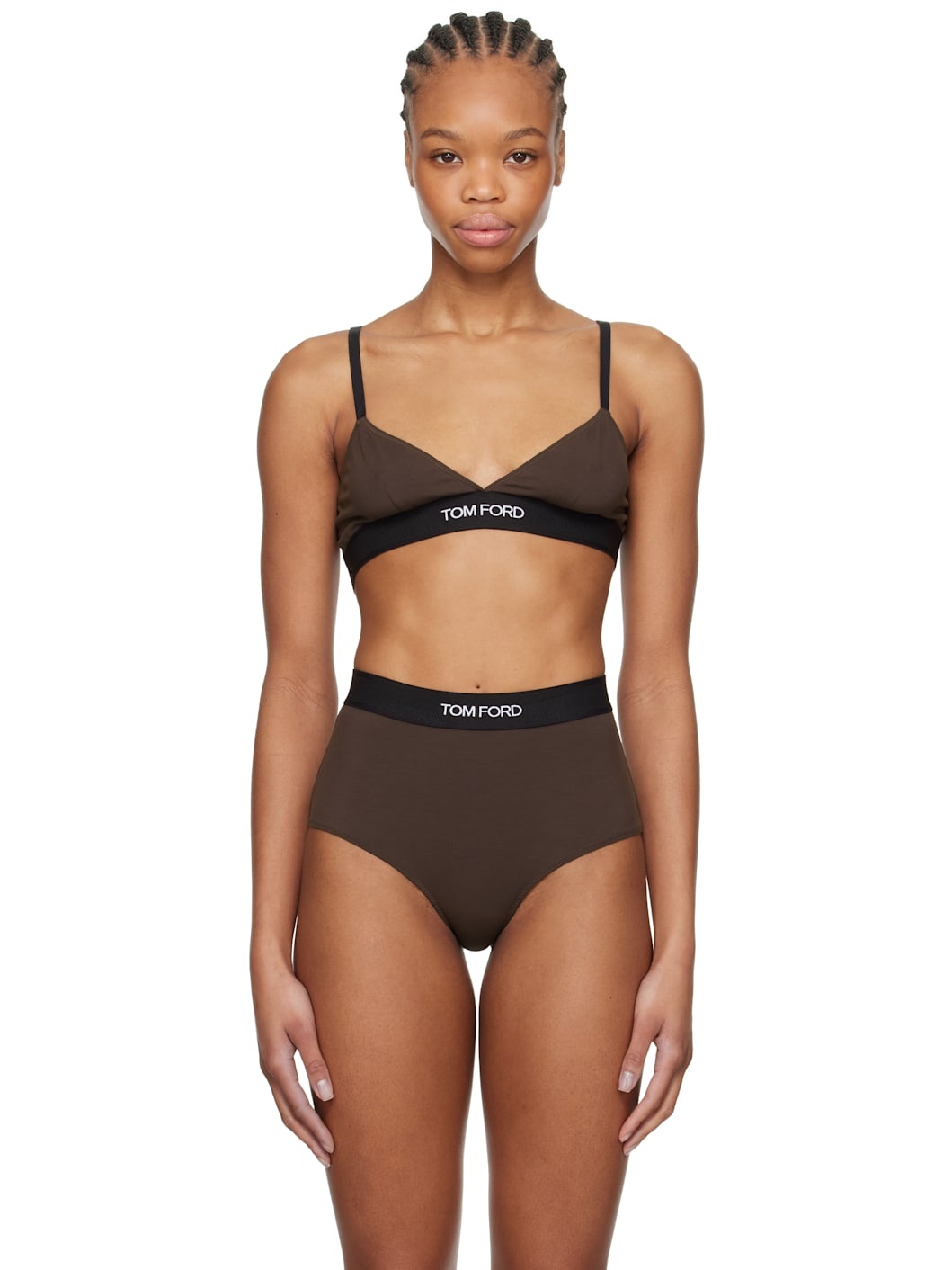 Stretch modal jersey bra. · V-neck · Dart at cups · Adjustable spaghetti straps · Logo-woven elasticized hem · Hook-eye fastening at back Supplier color: Darkest brown Body: 97% modal, 3% elastane. Trim: 82% polyester, 9% elastane, 9% polyamide. Made in Bosnia And Herzegowina 251076F073016