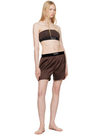 Brown Stretch Silk Satin Boxer Shorts