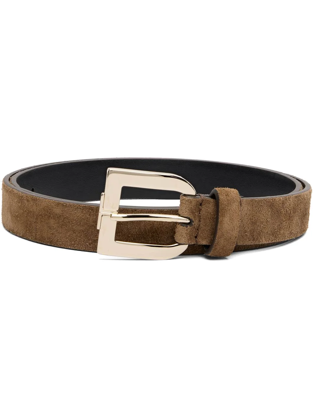 Calfskin suede belt. · Pin-buckle fastening · W0.75" Supplier color: Eda Whisky Calfskin. Made in Italy 261076F001004