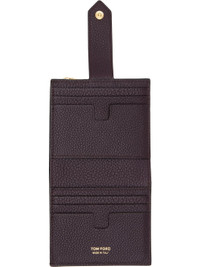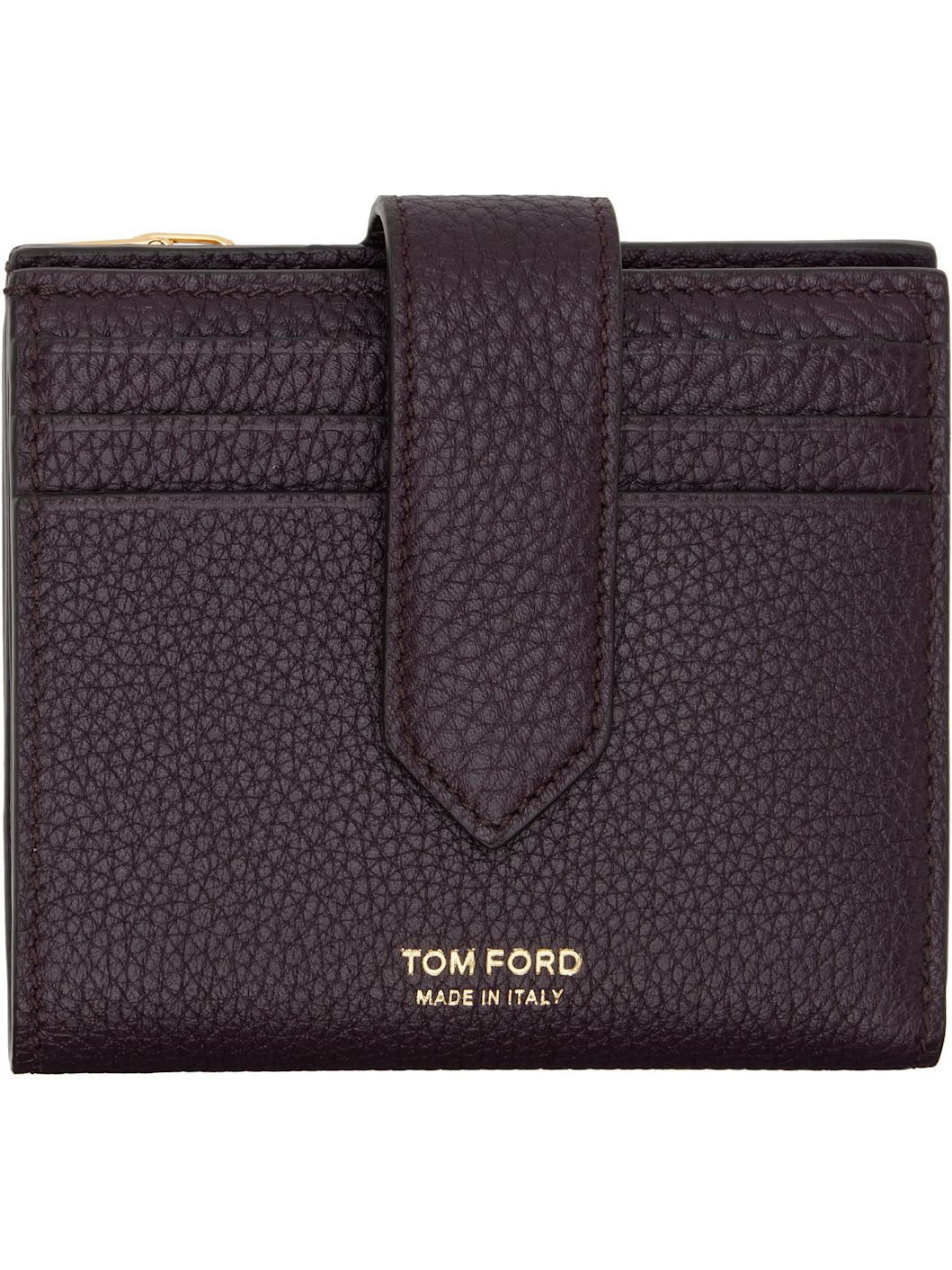 Pebble-grained calfskin bifold wallet. · Gold-tone logo stamp at face · Zip coin compartment at back face · Press-stud closure · Ten card slots and two patch pockets · One note slot · Canvas lining · Gold-tone hardware · H3.75" x W4" x D0.75" Supplier color: Oxblood Calfskin. Made in Italy 252076M164004