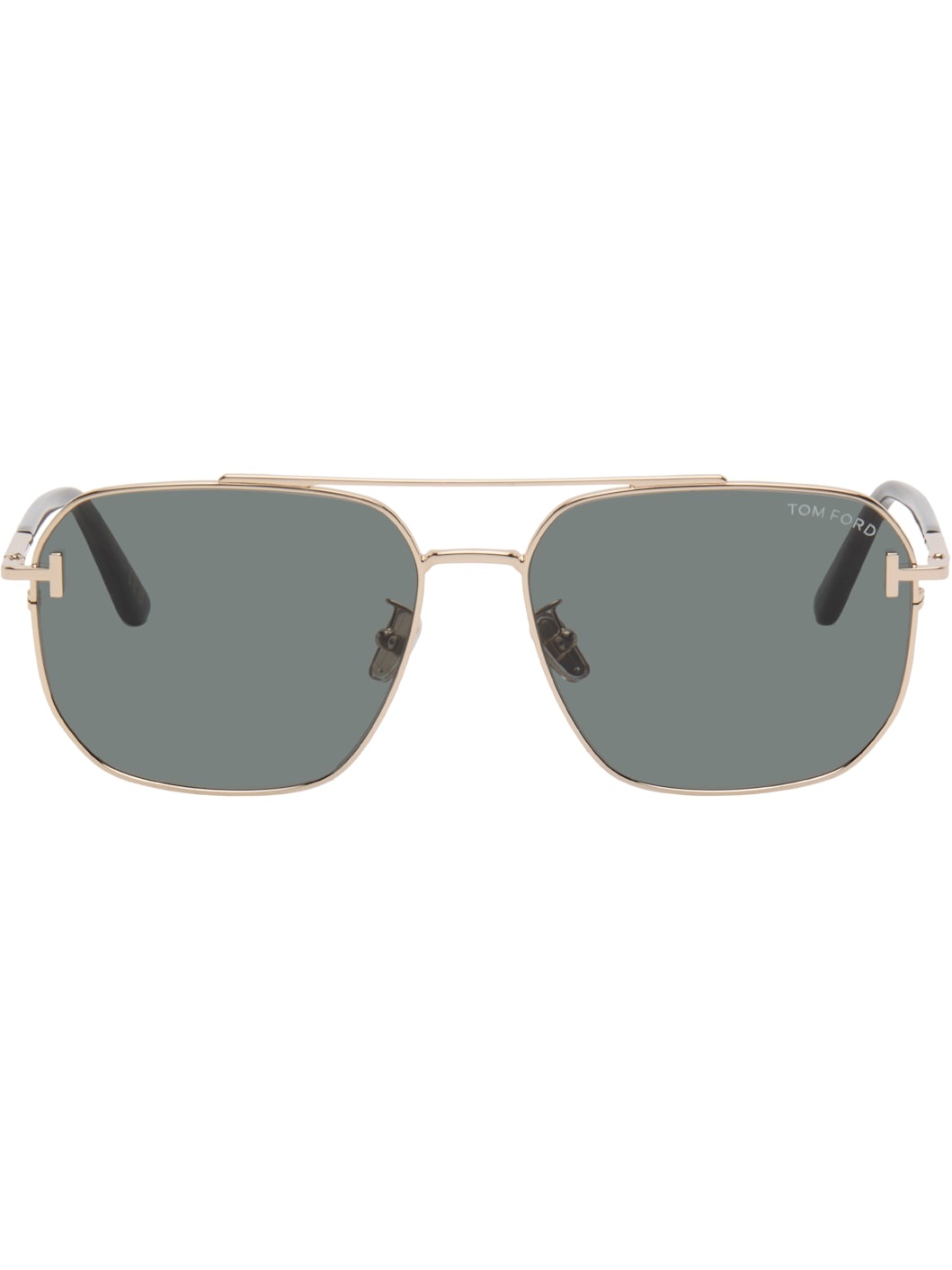 Aviator-style metal-frame sunglasses. · Gray lenses · Logo etched at lens · 100% UVA/UVB protection, category 3 · Top bar · Adjustable rubber nose pads · Logo hardware at face · Logo plaque at black acetate temple tips · Includes case · Size: 61.16 145 Supplier color: Yellow gold Metal, acetate. Made in Italy 252076M134014