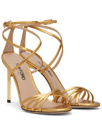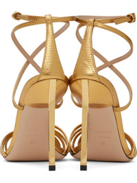 Gold Laminated Printed Lizard Ida Heeled Sandals