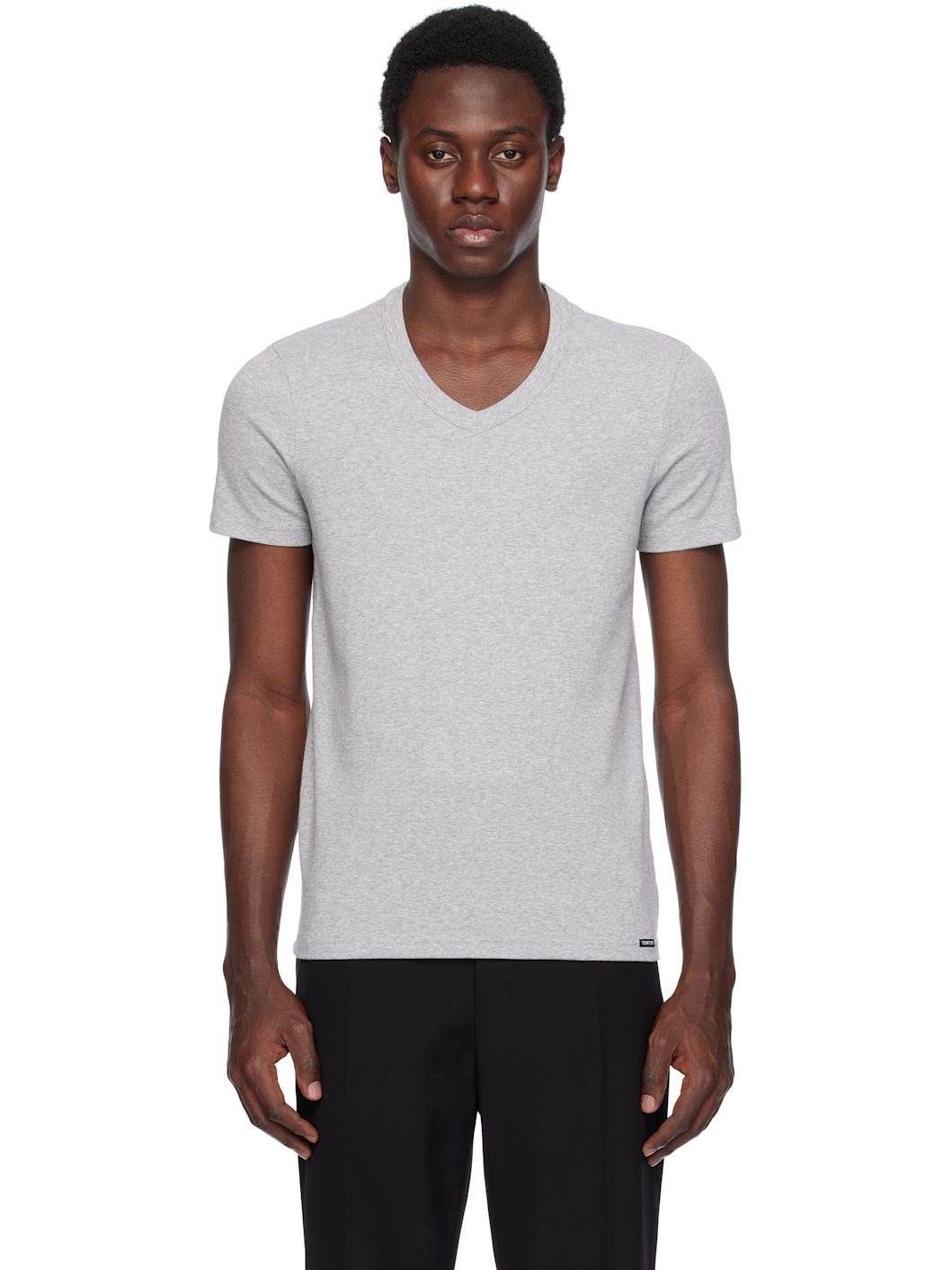 Stretch cotton jersey T-shirt. · Rib-knit V-neck · Logo patch at front hem Supplier color: Grey 90% cotton, 10% elastane. Made in Bosnia And Herzegowina 251076M213008