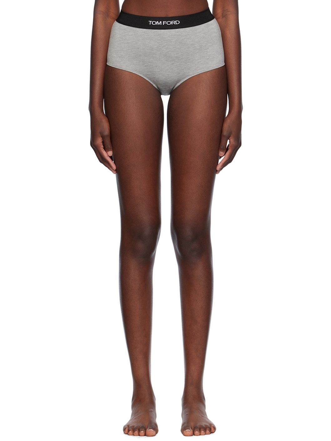 Stretch modal jersey briefs. · Jacquard logo at elasticized waistband · Partially lined Supplier color: Grey melange 97% modal, 3% elastane. Made in Bosnia And Herzegowina 242076F074000
