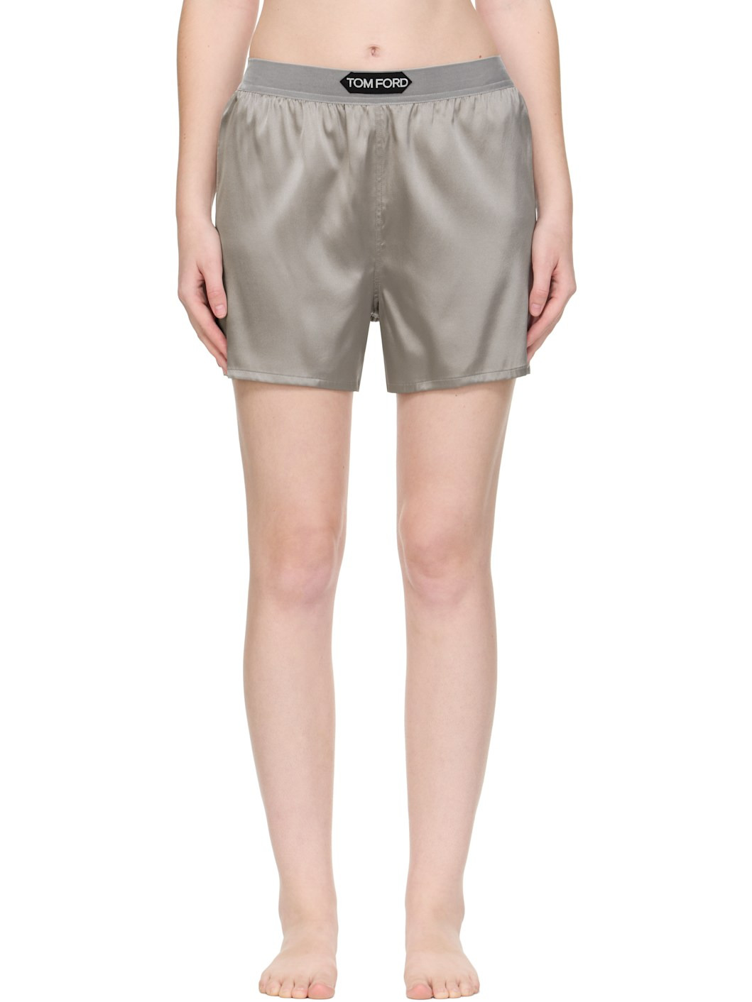 Gray Stretch Silk Satin Boxer Shorts