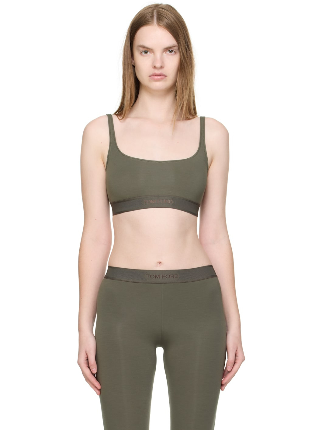 Stretch modal jersey bralette. · Scoop neck · Jacquard logo at elasticized hem · Integrated shoulder straps · Low back Supplier color: New military Body: 97% modal, 3% elastane. Trim: 82% polyester, 9% polyamide, 9% elastane. Made in Bosnia And Herzegowina 252076F073006