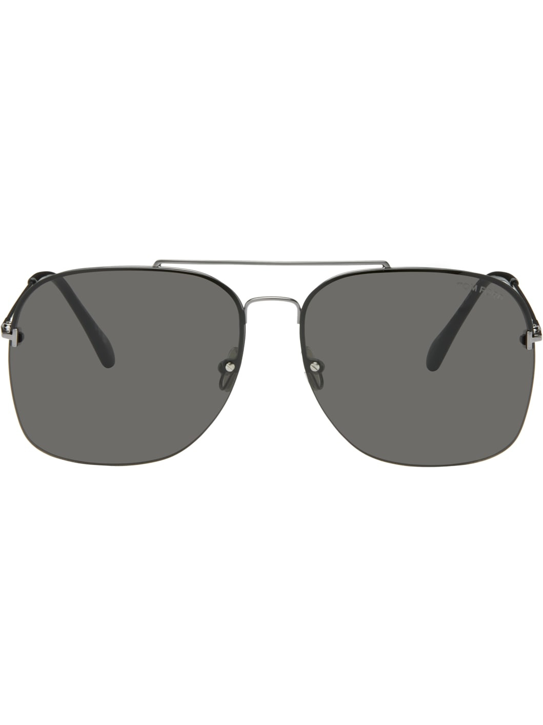 Aviator-style rimless metal-frame sunglasses. · Gray lenses · 100% UV protection, category 3 · Logo etched at lens · Top bar · Adjustable rubber nose pads · Logo hardware at hinges · Logo plaque at acetate temple tips · Size: 64.15 140 Supplier color: Grey Metal. Made in Italy 252076M134019